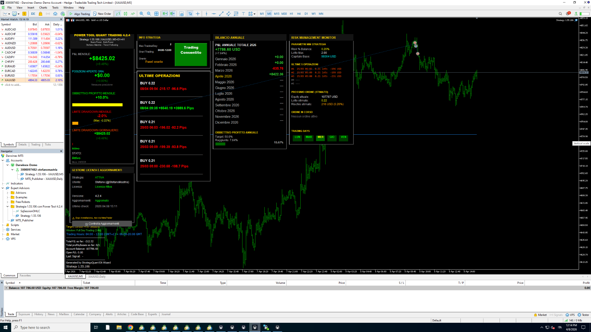 Con il supporto AI di Claude Opus e Claude Code, porto avanti progetti di ricerca per sviluppare Power Tools ed Expert Advisor per facilitare il trading di tutti i giorni e per automatizzare alcune Strategie di Trading.