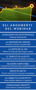 Ogni link riporta ad articoli e video più specifici. Mente quì di seguito riporto il video del webinar svolto di recente su questo argomento. Nella sezione “corso di trading” è possibile consultare i video dei webinar precedenti. In modo da studiare il funzionamento del business del trading partendo da zero.